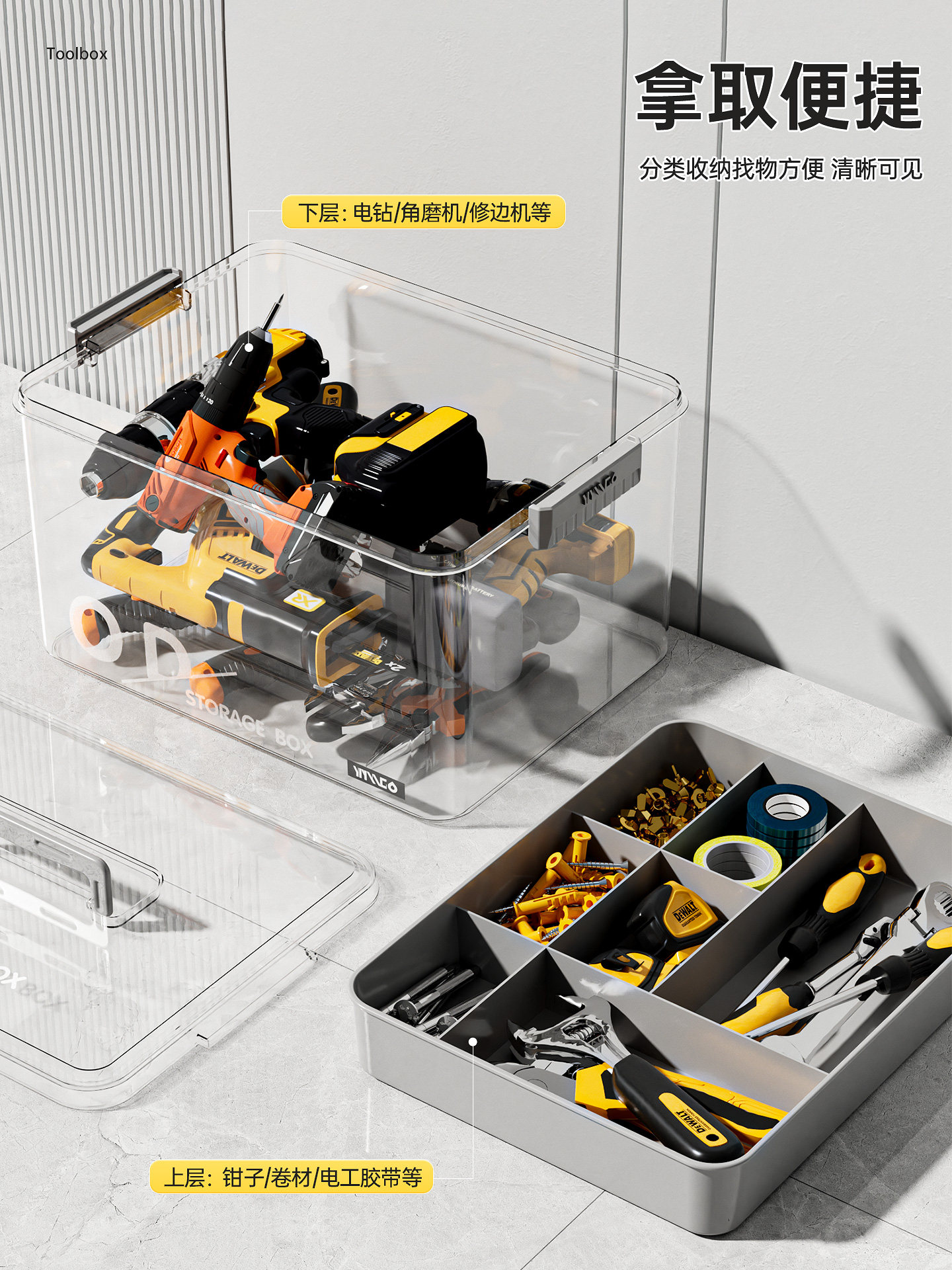 工具箱家用透明收纳盒多功能零件杂物五金整理盒双层大容量收纳箱