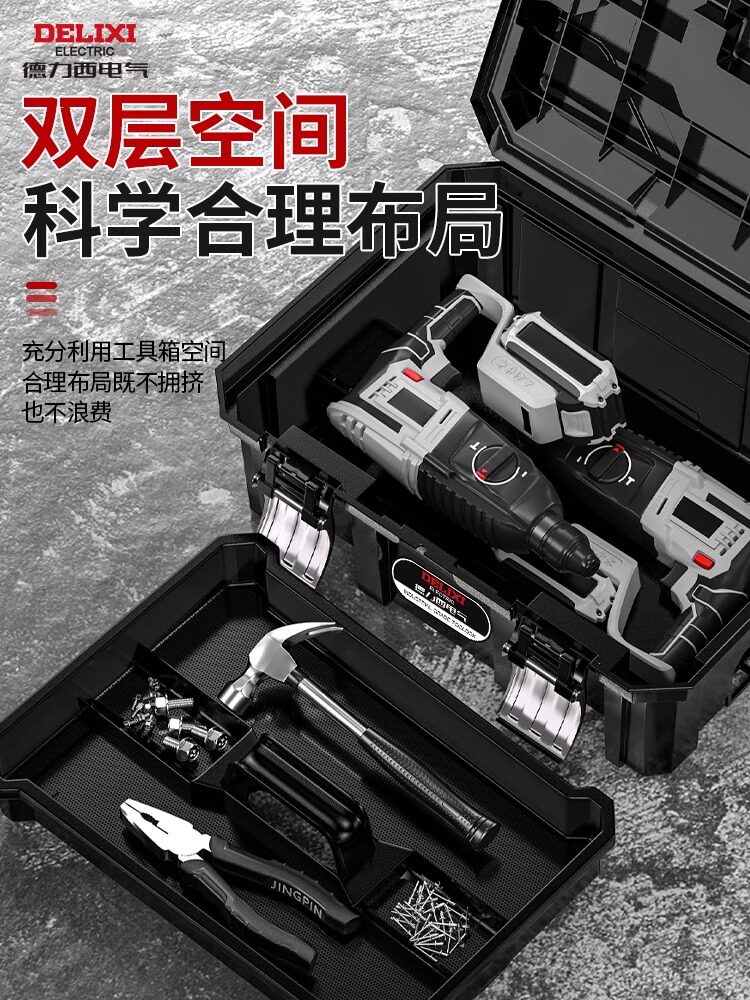 德力西电气工具箱工业级家用多功能收纳箱套装电工冲击钻五金工具