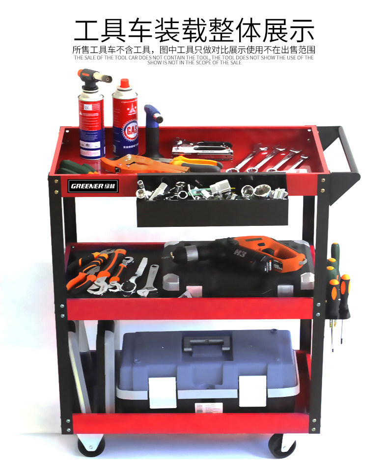 绿林工具车三层手推车多功能移动汽车维修箱架子层小推车间用柜子