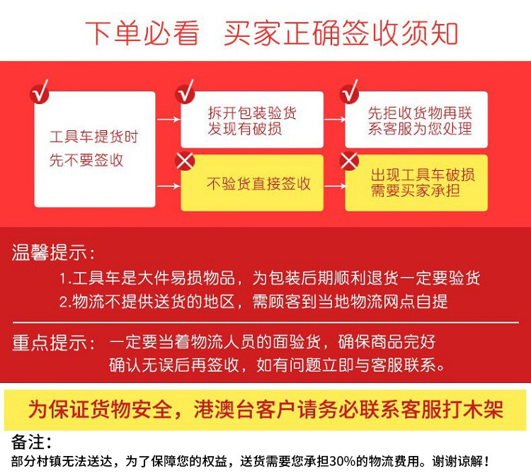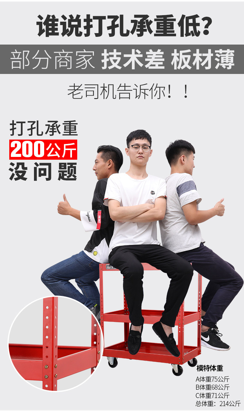 大尺寸工具车红【静音刹车轮+挂钩】