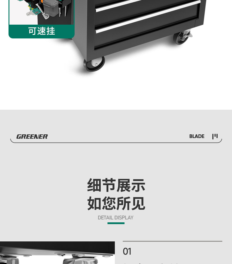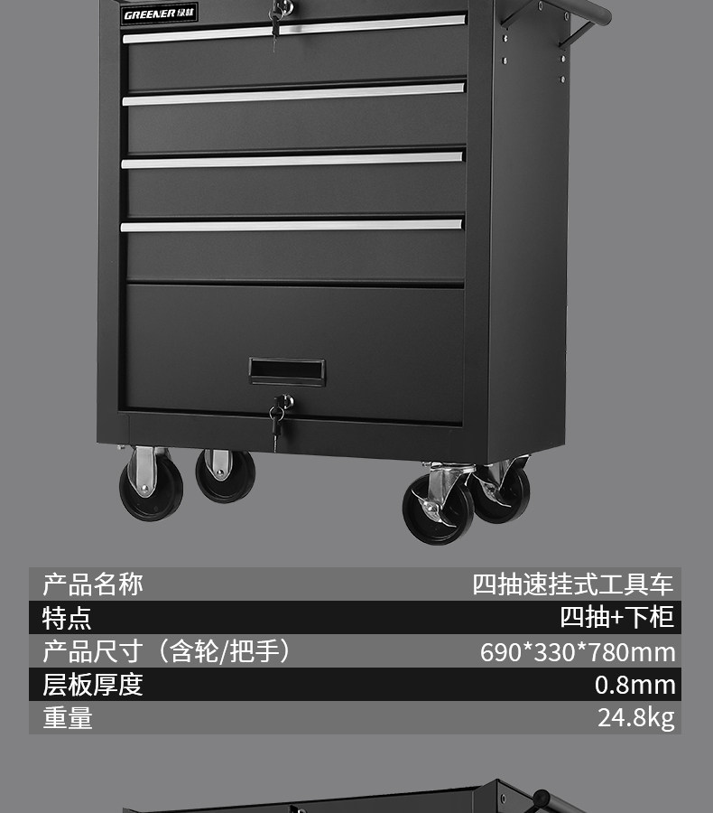 绿林速挂工具车车间移动小推车多功能汽修维修工作台车间工具箱车