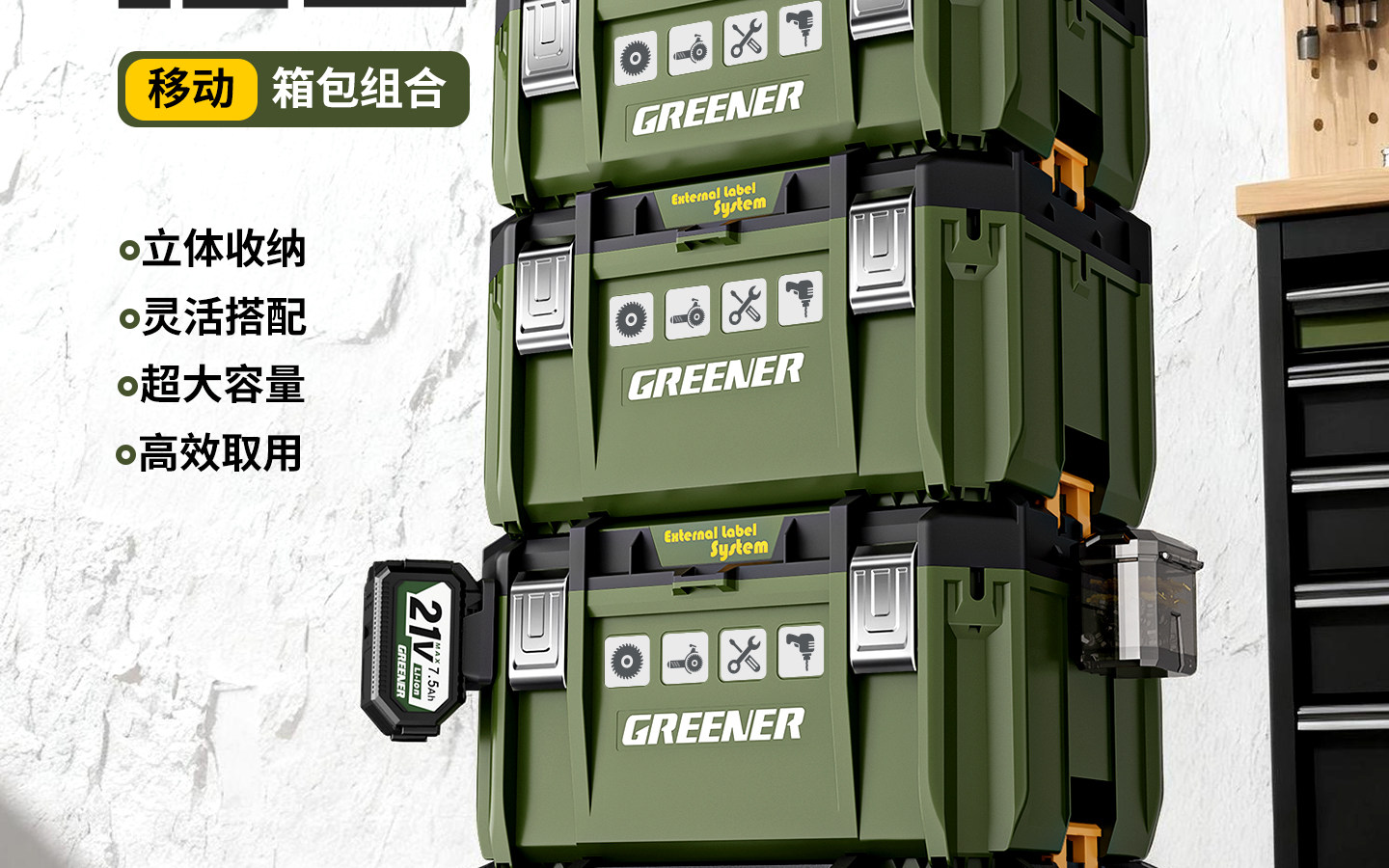 1号大型【堆叠工具箱】(4快挂位)