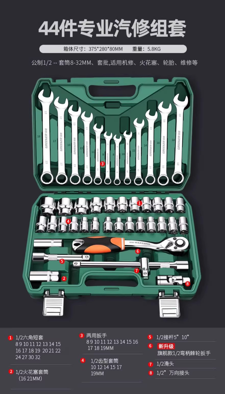 【旗舰款】72齿弯柄汽修44件套