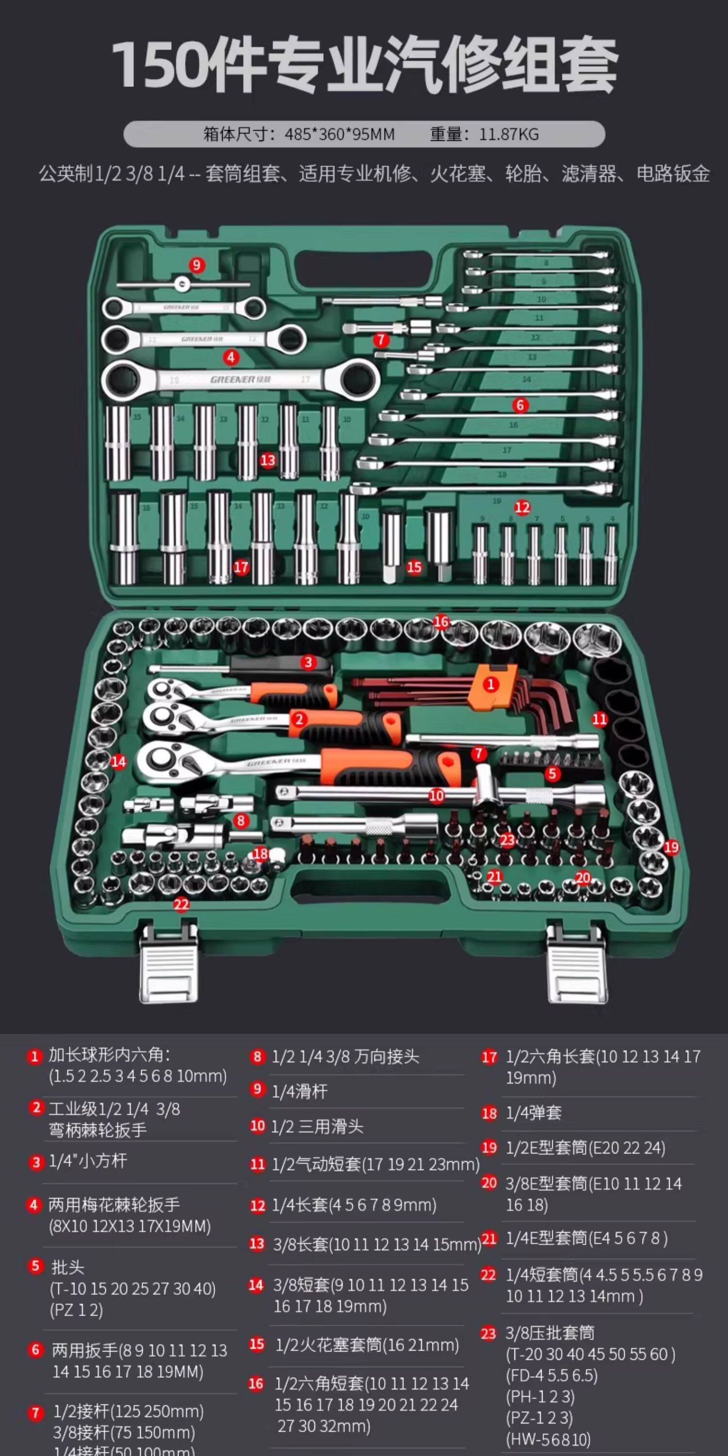 升级72齿弯柄汽修150件套