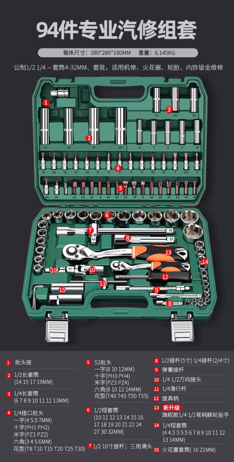 升级72齿弯柄汽修94件套