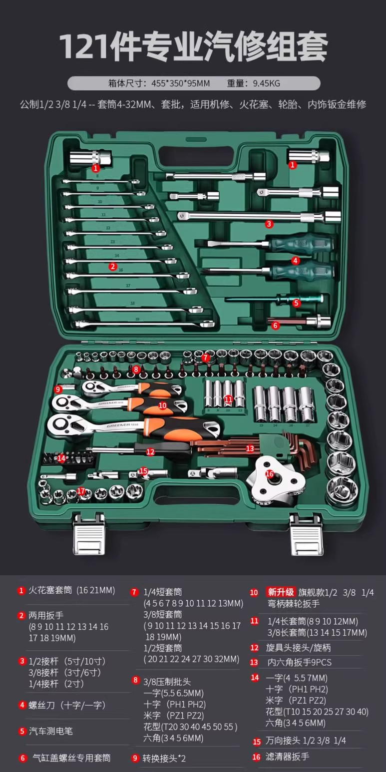 【旗舰款】72齿弯柄汽修121件套