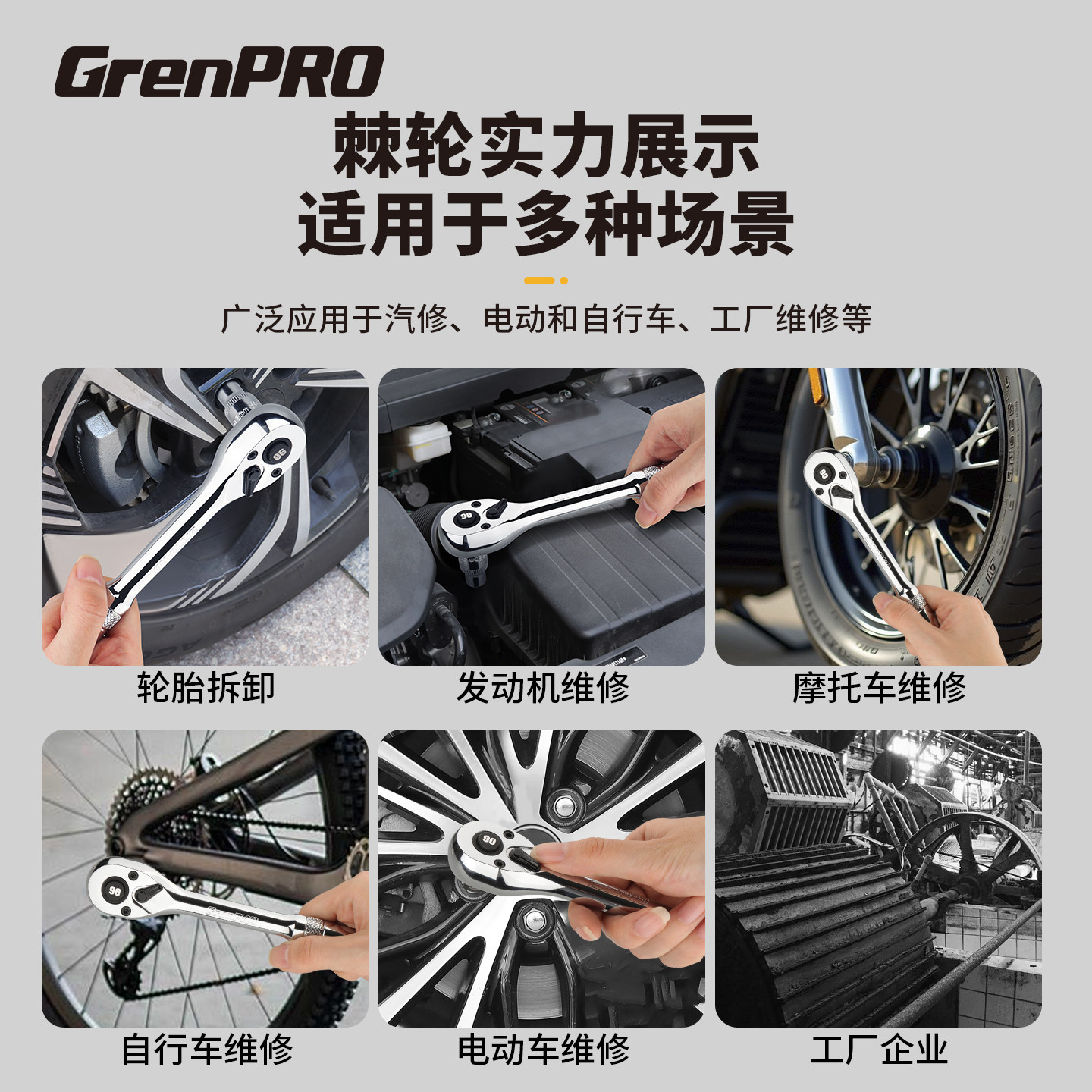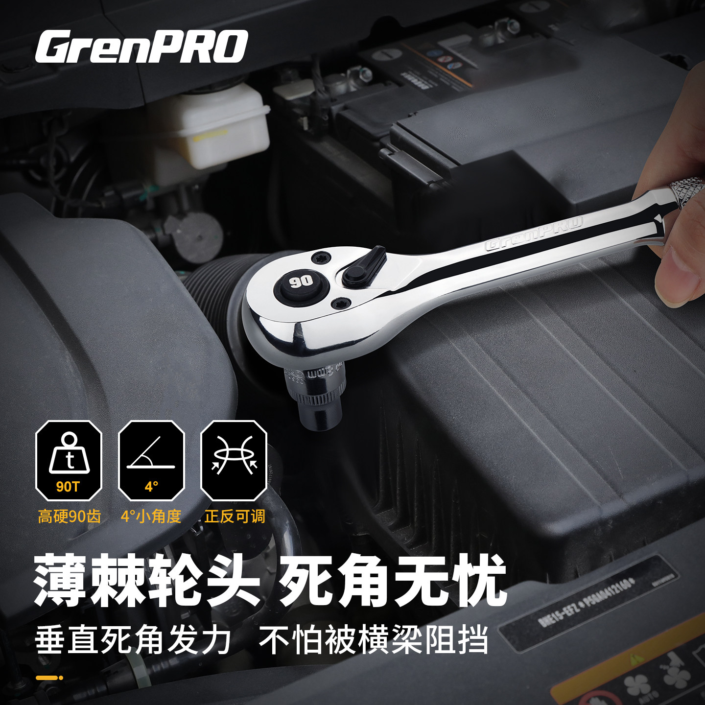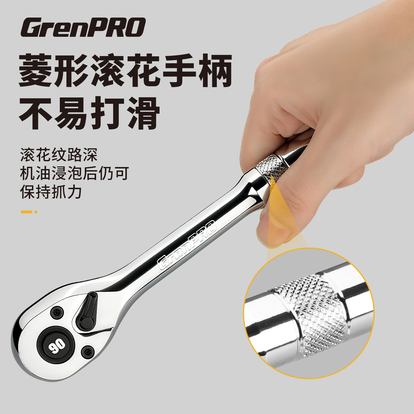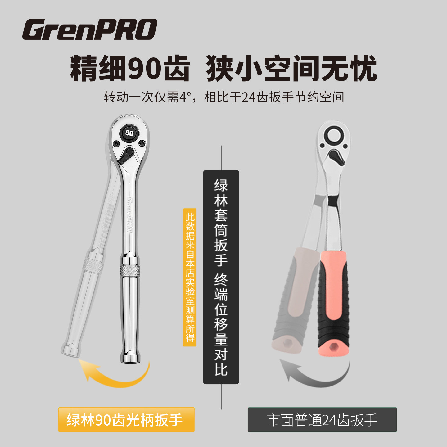绿林90齿快速棘轮套筒扳手大飞1/4寸套筒扳手中飞双向省力刺轮汽修扳手荆棘