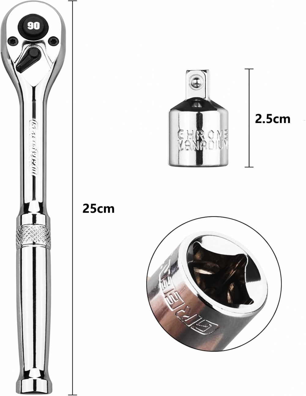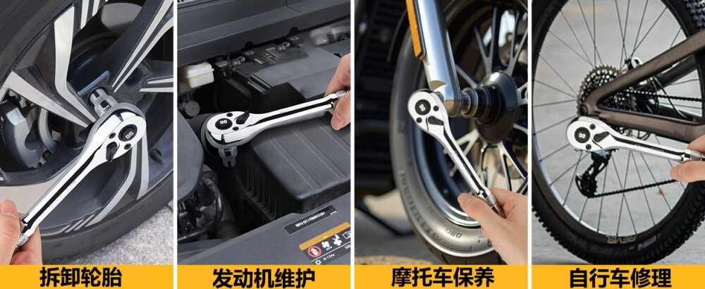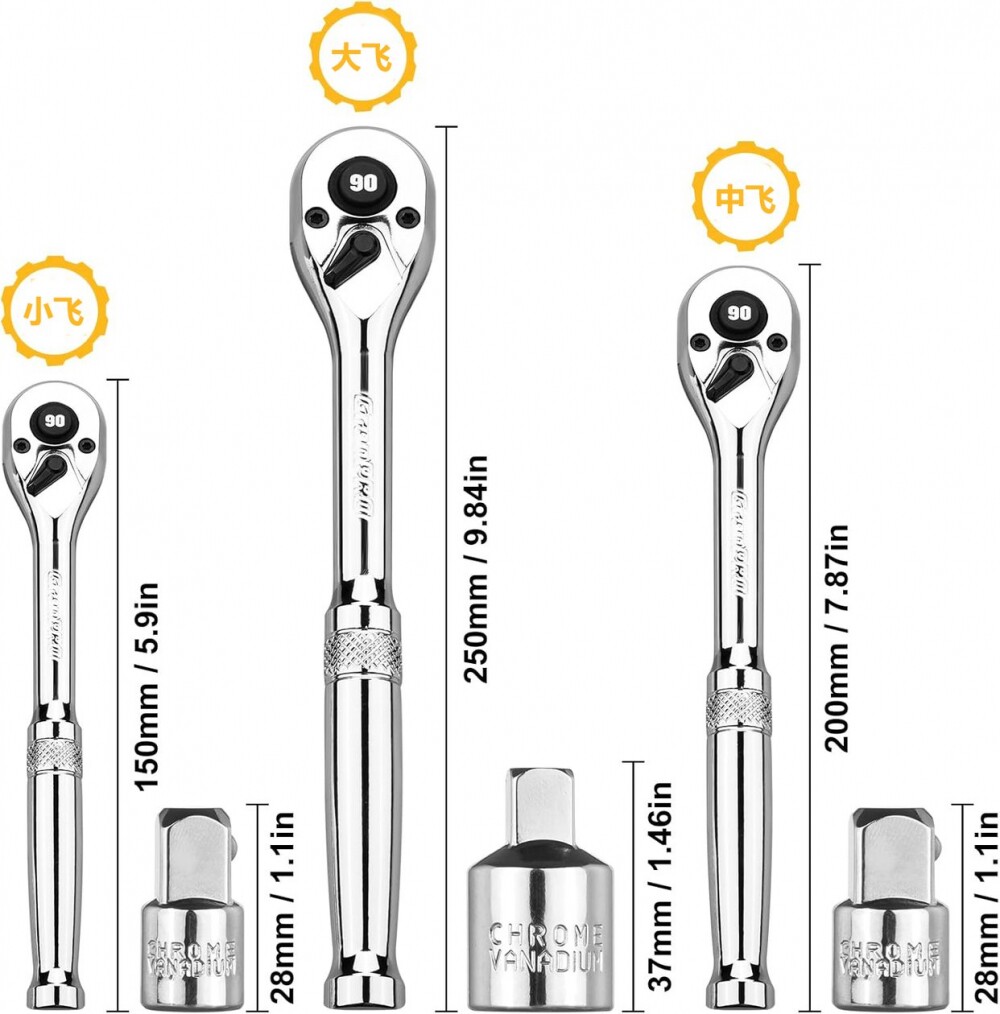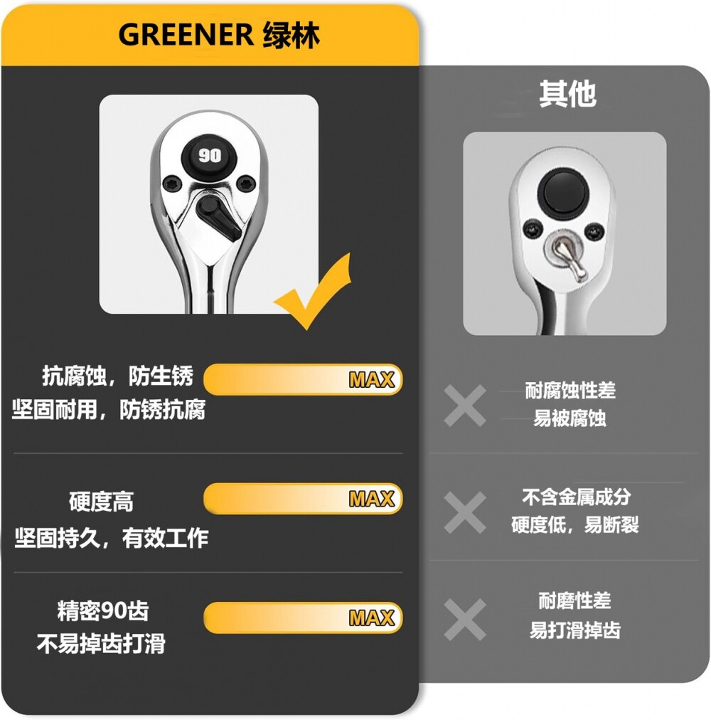 绿林90齿快速棘轮套筒扳手大飞1/4寸套筒扳手中飞双向省力刺轮汽修扳手荆棘