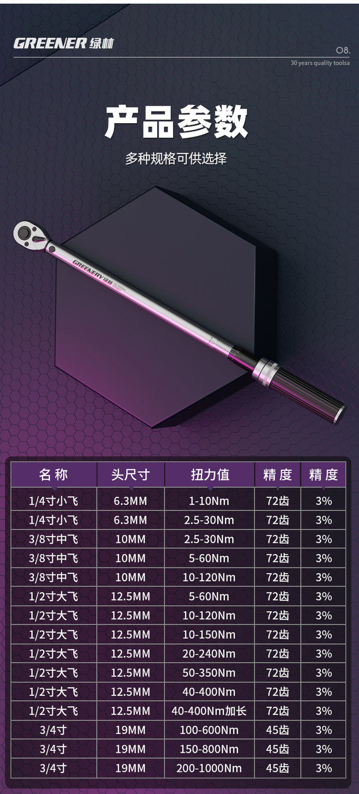 3/8寸2.5_30Nm扭力扳手5件套(国标三级精度+证书)