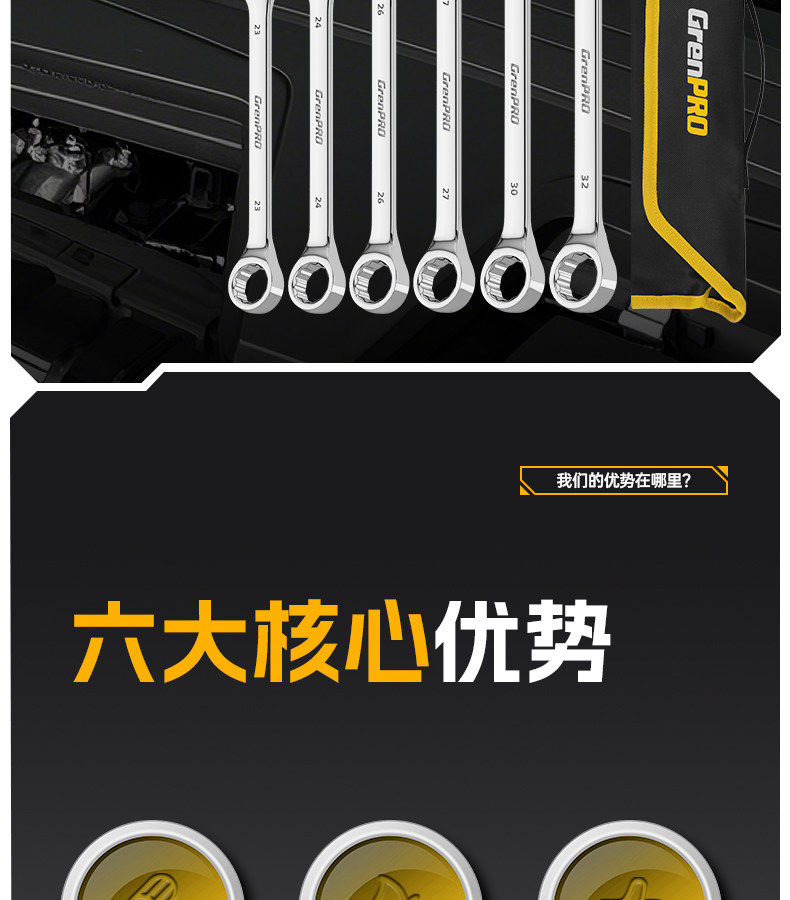 【长度增加80%】GrenPRO双头活动棘轮(金轮)6件套(8_19)