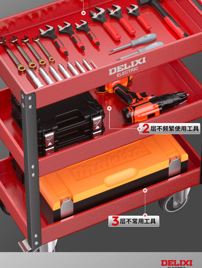 德力西工具车多功能车间移动小推车工作台工具柜重型汽修工具箱车