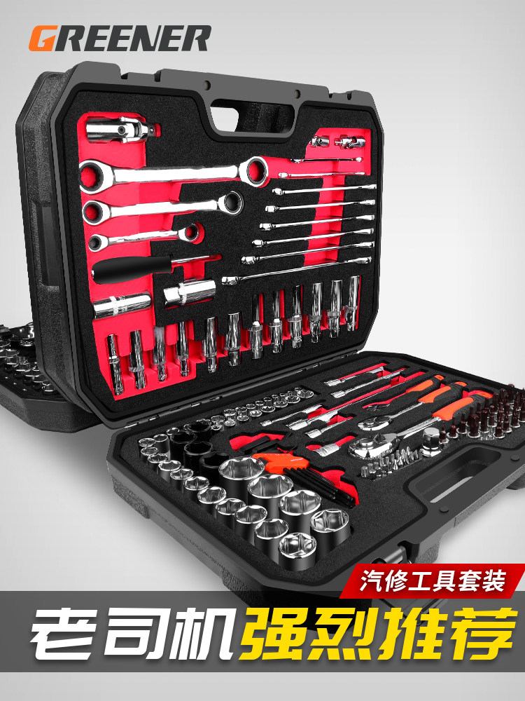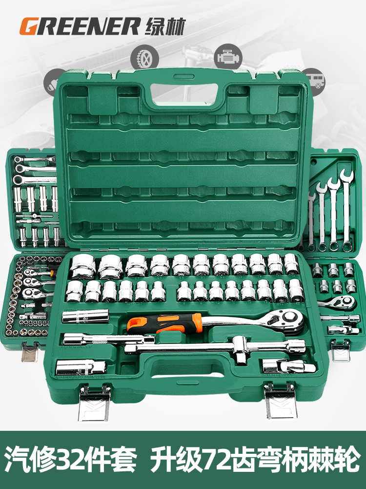 绿林套筒套装棘轮扳手工具套装万能修车工具多功能随车汽修工具箱