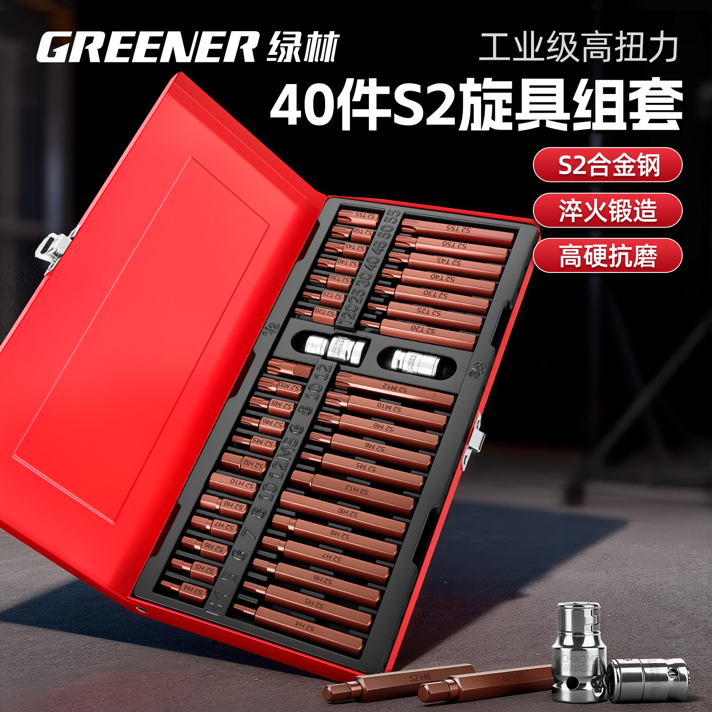 绿林40件套内六角套筒套装t50 40梅花型批头电动起子汽修工具花键