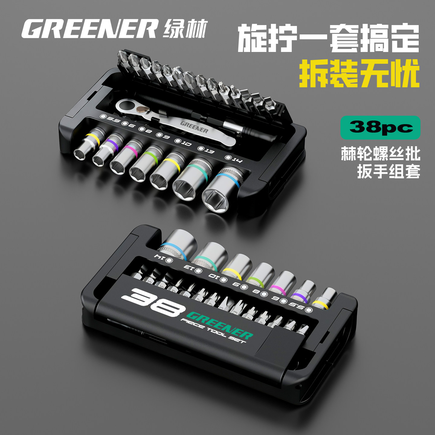 绿林棘轮扳手工业级小飞快速套筒扳手六角梅花弯头螺丝刀工具套装